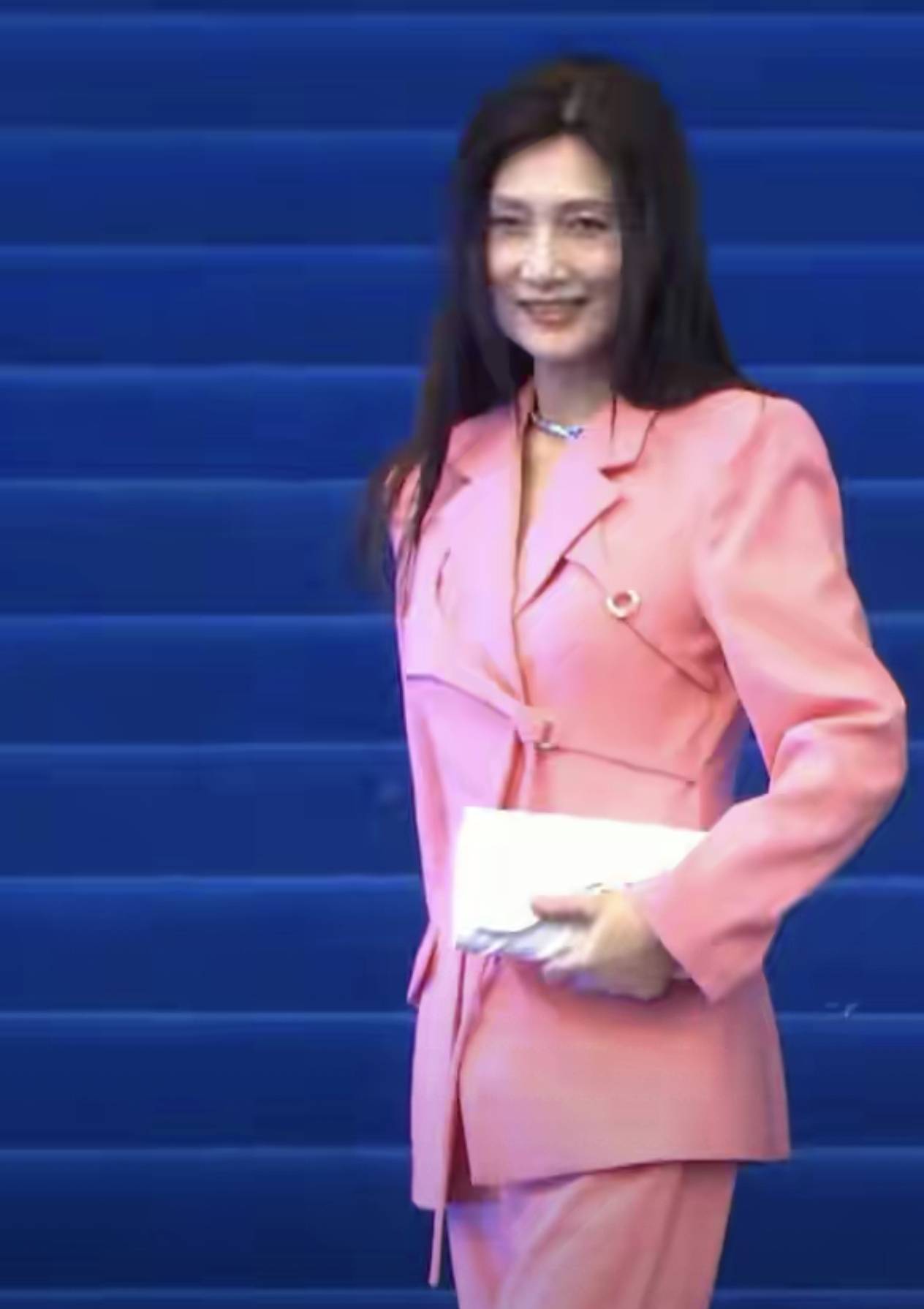 60岁的林芳兵,穿着一套粉色西装优雅亮相。镜头扫过去的那一刻,全场都安静了。粉西装衬得她肤白如雪,气质出众,风韵不减当年。这哪里是60岁?分明还是从《唐明皇》里走出来的那个大唐贵妃!