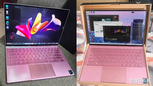 全局粉色配色女生专用。拆包装取真机,小编拿到手的这台灵刃13是二手机器,成色一般,使用痕迹明显,但主体功能完善,电池健康度在95%以上,值得一用。机身是非常小众的粉色,全局配色,除了屏幕面的黑边,连细节的转轴处也做了粉色打磨。不仅如此,机器掌托处是实打实的直角边样式,没有弧形过渡,也没有cnc亮边,商务风气息扑面而来。日常使用,机器重达1.4千克,加上充电器和鼠标套装,好像也并不轻薄。